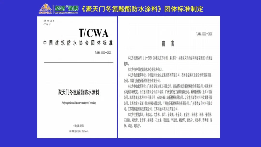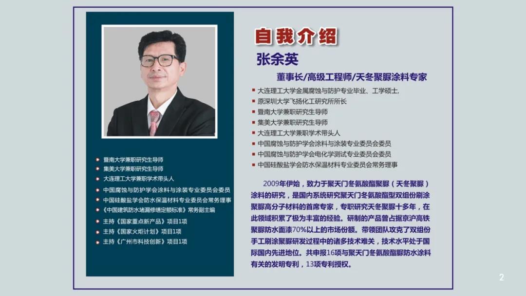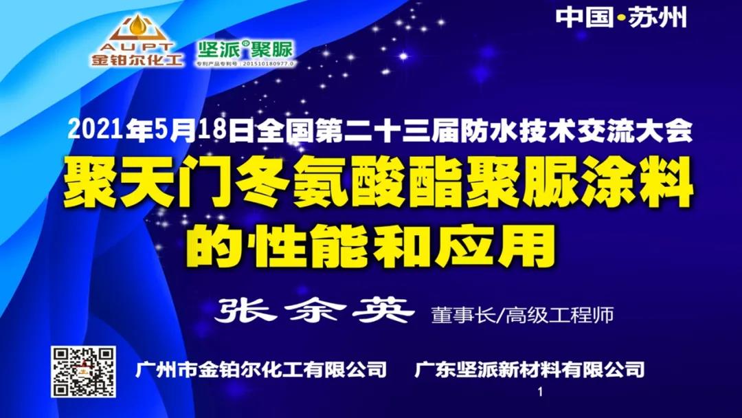 會上,?東堅派新材料有限公司張余英作了《 聚天門冬氨酸酯聚脲涂料的性能和應用》的報告。